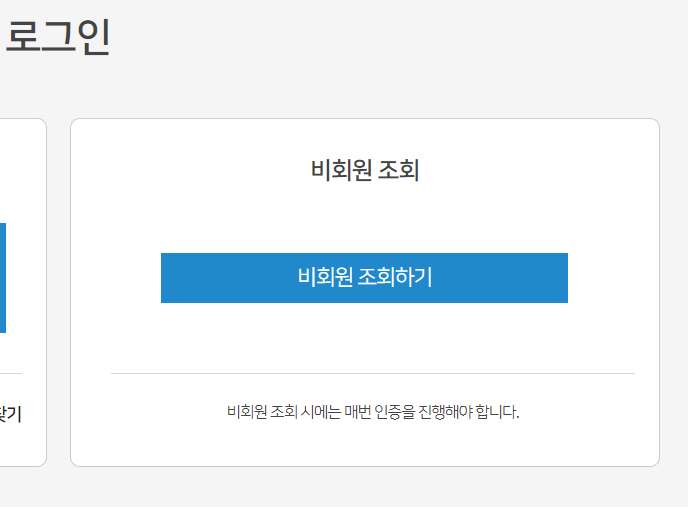 아무리 공식기관이라도 사이트 가입은 번거로울 수 있습니다. 본인확인이 가능한 수단 인증등으로 회원가입을 하지 않고도 회원 조회가 가능한 부분은 매우 편리한 기능 중 하나라고 볼 수 있습니다.